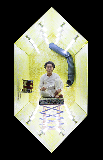 Gray Hive, a project consisting of performance video, installation and photography, is a result of grafting two different systems. Humanity has always dreamed of eternal youth, and achievements in scientific technology have raised life expectancy up to 100 years. However, the question remains as to whether our happiness is also extended by increased life expectancy. When talking about the future, we are inclined to think of elaborate technologies, despite the possibility that our realistic future might actually be that of elderly loneliness — somewhat removed from technology.